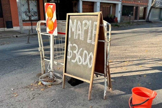 “Maple $3.600”, reza el mensaje de un pizarrón ubicado en el corralito de un socavón, ubicado en una de las arterias más importantes del sur de la ciudad de Santa Fe.