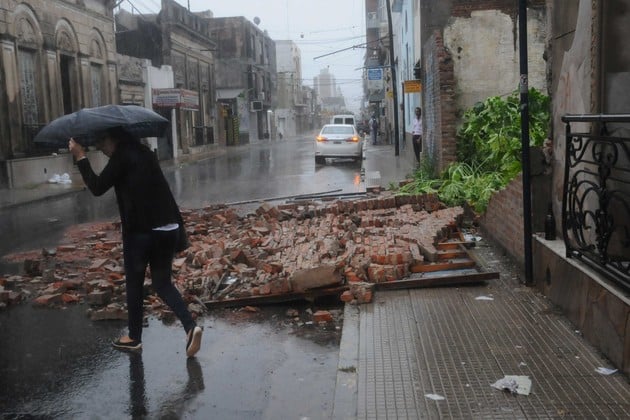 Cayó mampostería en pleno centro de la ciudad. Foto: Flavio Raina