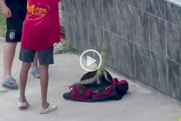En el video se puede ver cómo dos menores mantienen al animal atado con una soga que hacía las veces de correa. Se observa también cómo lo trasladan dentro un bolso de mano. Mirá el video.