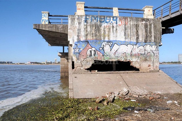 Fue parte de un puente ferroviario, luego de una confitería e incluso de una aerosilla, pero ahora hay escombros, mucha suciedad y faltan ladrillos en la base.