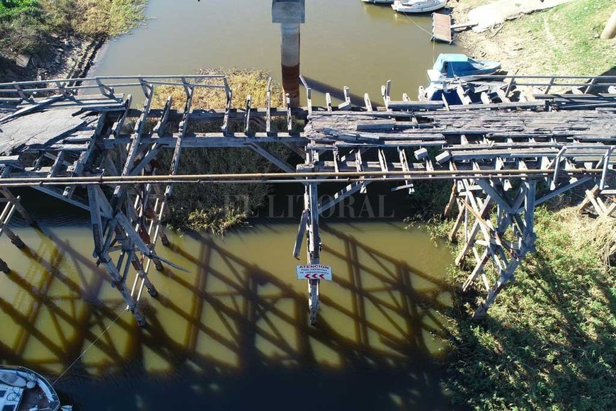 Al puente le faltan partes. Algunas quedaron colgando y debieron ser retiradas. Otras cayeron al riacho y se perdieron en la espesura marrón, de limos y arcillas.
