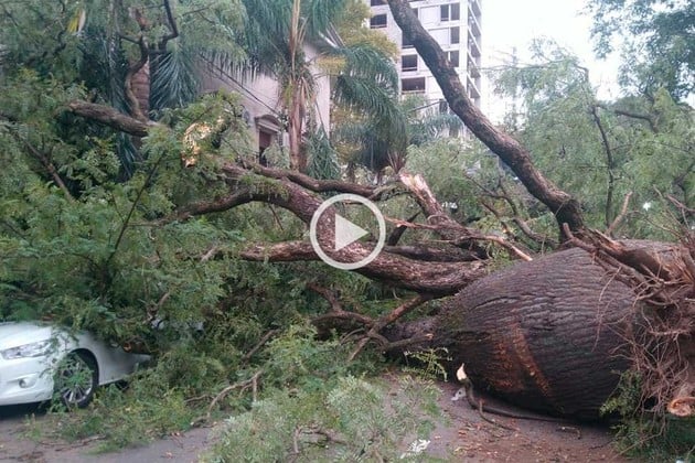 Uno de los puntos más complicados era la zona de Bulevar Gálvez y Güemes, donde cayeron dos grandes árboles del paseo tradicional y provocó el corte de tránsito. Como se aprecia en las imágenes, un vehículo quedó afectado por la caída.