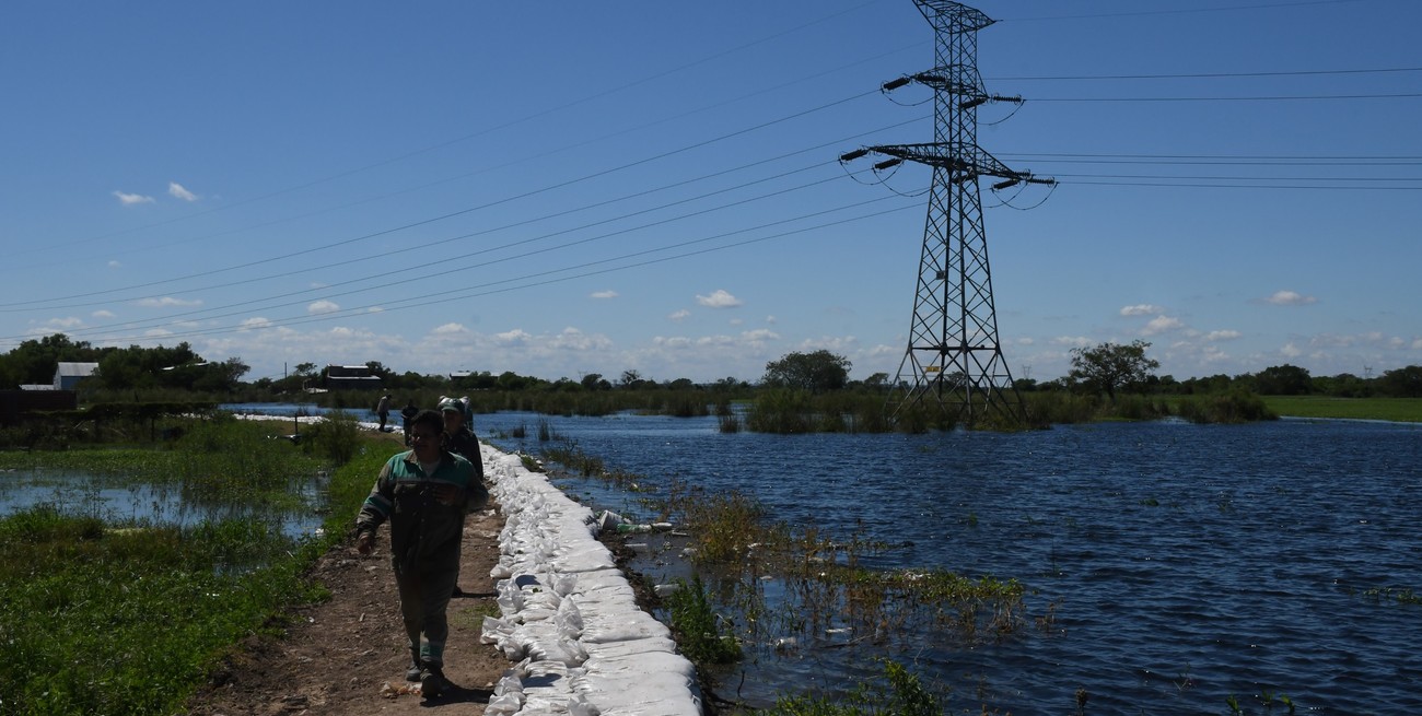 Pese a ese escenario, varios municipales -hombres y mujeres - colocaban bolsas de arena para contener el avance del río. “Estamos trabajando 12 horas por día colocando bolsas de arena a lo largo de todo el camino. Las hombreamos y las llevamos. Ojalá sirva de algo”, dijo uno de los trabajadores. Y es que el agua ya está prácticamente al ras de la primera fila de bolsas colocadas.