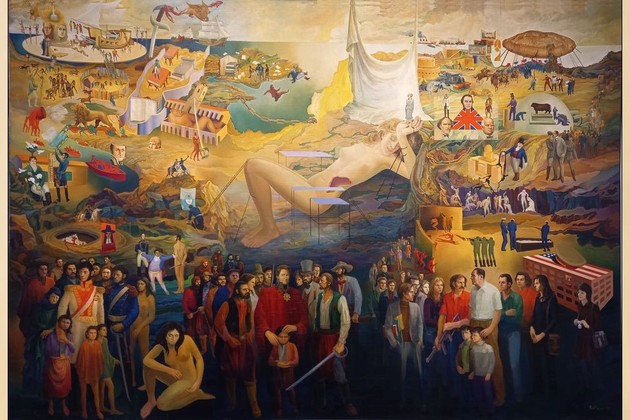 El artista nacido en San Javier retrató en un cuadro monumental los procesos y protagonistas de la historia nacional. El devenir de la obra siguió los vaivenes de los procesos políticos posteriores, como así también la familia del artista.