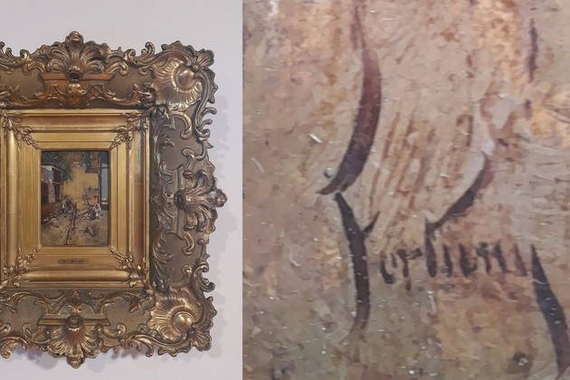 Para poder dejar el cuadro en las condiciones en que se encuentra ahora, el restaurador debió trabajar alrededor de seis meses. Aquí se observa el cuadro y la firma del pintor. Foto: Gentileza Santa Fe Arte