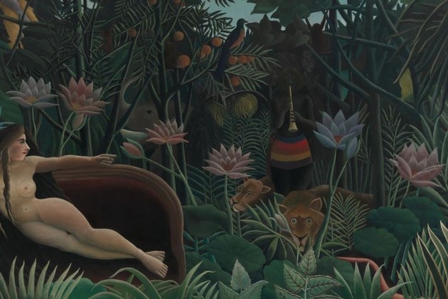 A diferencia de muchos de sus contemporáneos, Henri Julien Félix Rousseau no inició su carrera artística en una academia. De hecho, fue un aduanero que no tomó en serio la pintura hasta que llegó a los 40 años de edad. Paradójicamente, esa falta de formación académica le permitió desarrollar un estilo libre de las influencias tradicionales, que se reflejó en su obra, caracterizada por trazos simples que ocultan complejidades. Muchas de sus pinturas, por ejemplo, contienen figuras humanas y animales en paisajes exóticos, de ensueño. Una de sus obras más emblemáticas, “El sueño” (1910), muestra a una mujer desnuda reclinada en una selva, rodeada de flora y fauna exóticas. Esta pintura, como muchas otras de Rousseau, lleva al que mira a un mundo de fantasía.