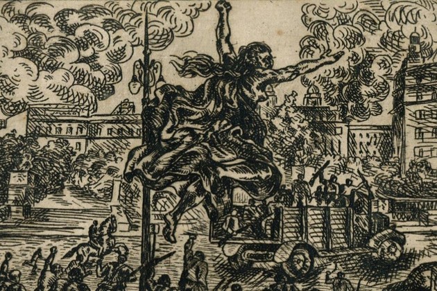 Estampa de Gustavo Cochet titulada “19 de julio 1936”. aguafuerte de los años 30. Foto: Museu Nacional d’Art de Catalunya