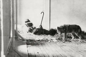 Beuys con el coyote en la galería. Foto: The Collector / Medium