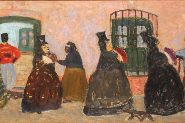 “Salida de misa”, óleo sobre cartón. Foto: Museo Nacional de Bellas Artes
