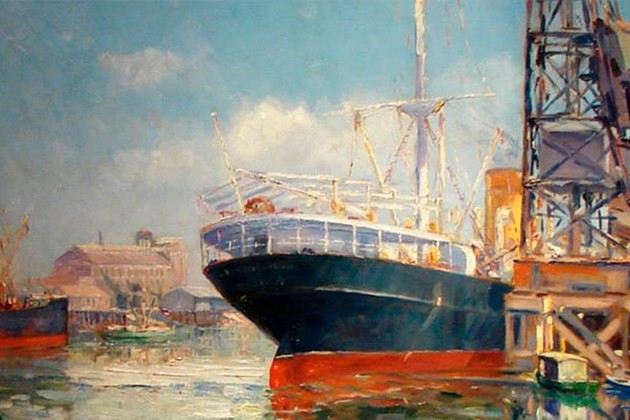 "Domingo en el puerto", óleo de Grewell. Foto: Arte de la Argentina