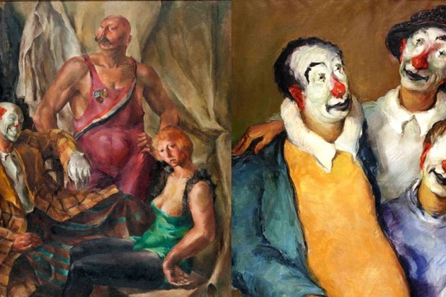 “Entre telones” y “Payasos”, obras de Enrique de Larrañaga. Foto: Museo Nacional de Bellas Artes / Arte de la Argentina