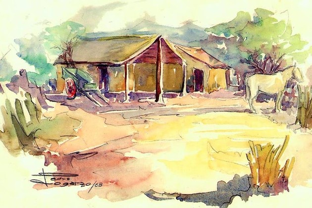 “Ranchada en Santa Fe”, acuarela de Logarzo del año 1968. Foto: Arte de la Argentina