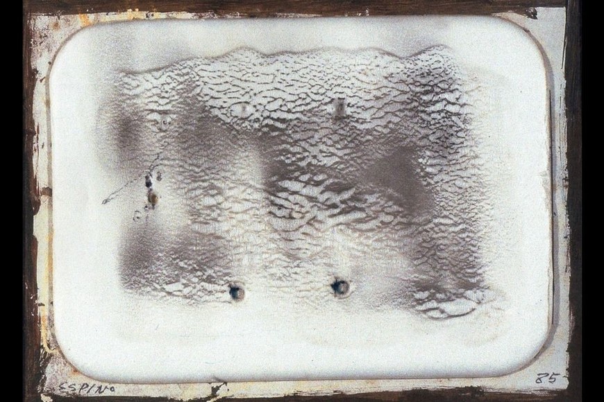 Espino fue, en nuestro medio, precursor del arte contemporáneo. La reflexión sobre la naturaleza del arte, la abstracción al servicio del espacio pictórico y la incorporación de elementos de desecho o de uso cotidiano como experimentación material, fueron las preocupaciones centrales que hasta entonces nadie se había atrevido a plantear en nuestra ciudad. Espino se aparta de todo convencionalismo con una propuesta desafiante, poniendo en crisis lo conocido y visto hasta el momento.