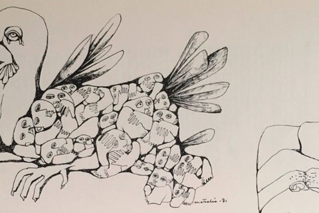 “Ñandú”, trabajo en tinta de Jorge Mattalía. Foto: Arte de la Argentina