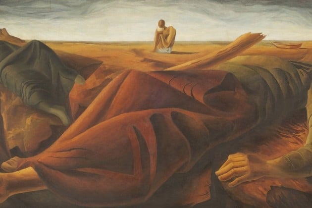 Roberto Amigo lo explica en un texto que escribió sobre Pierri para el Museo de Bellas Artes. Señala que el surrealismo que impactó a Pierri no era el más cerrado, de los primeros manifiestos sino aquel que se abría a la cooptación internacional ante el avance del fascismo. “Las figuras de Pierri en espacios yermos o en ruinas indican tanto la deuda con una concepción plástica derivada de aquella mirada parisina como la posición ideológica frente al derrumbe de la humanidad en la barbarie”, aclara.