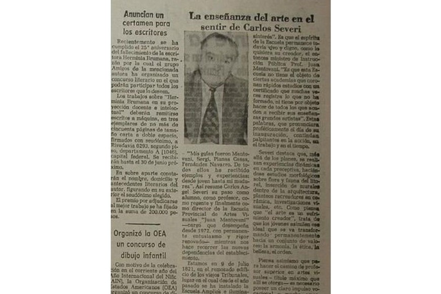 El Litoral realizó una entrevista con Severi en marzo de 1979, cuando todavía era director de la Escuela de Bellas Artes. La misma se publicó el 13 de marzo de ese año.