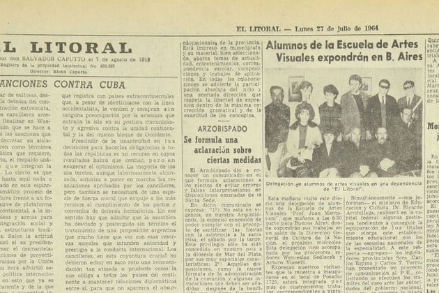 En la mañana del lunes 27 de julio de 1964, visitó el Diario El Litoral una delegación de alumnos de la Escuela de Artes Visuales Juan Mantovani, para anunciar su partida, a las 6.30 del día siguiente, hacia Buenos Aires. ¿El objetivo? Exponer sus trabajos en un salón de la Dirección General de Cultura de la Nación. Al concretar la reunión, el grupo estuvo acompañado por dos profesores, a la vez consagrados artistas de Santa Fe: Wenceslao Sedlacek y Arturo Vianelli.