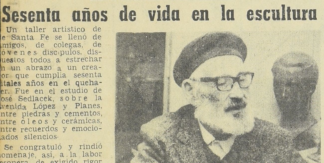 El jueves 1 de junio de 1978 El Litoral publicó un artículo bajo el título: “Sesenta años de vida en la escultura”. La misma, firmada por Jorge Taverna Irigoyen, daba cuenta de una actividad realizada el día anterior, consistente en un homenaje al escultor José Sedlacek. El texto dice: “un taller artístico de Santa Fe se llenó de amigos, de colegas, de jóvenes discípulos, dispuestos todos a estrechar en un abrazo a un creador que cumplía sesenta vitales años en el quehacer. Fue en el estudio de José Sedlacek, sobre la Avenida López y Planes, entre piedras y cementos, entre óleos y cerámicas, entre recuerdos y emocionados silencios”.