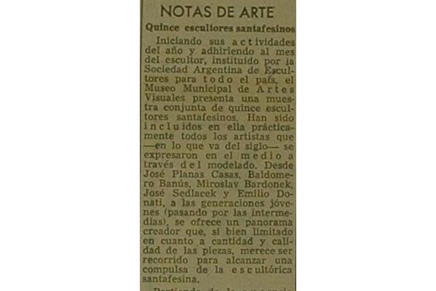 En marzo de 1968, para hacerse eco del Mes del Escultor, el Museo Municipal de Artes Visuales de Santa Fe presentó una muestra conjunta de quince escultores santafesinos.