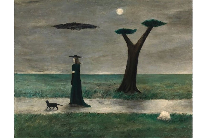 Otro de los motivos recurrentes de la artista es su propia figura. Se retrataba con frecuencia en sus cuadros como una mujer alta y delgada, con vestidos largos y sombreros puntiagudos que refuerzan su imagen de ‘bruja surrealista’.