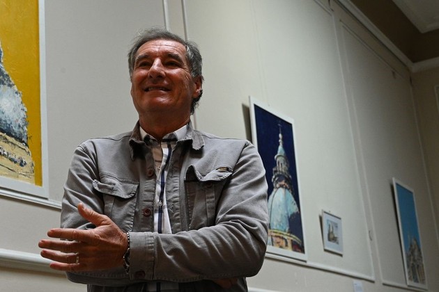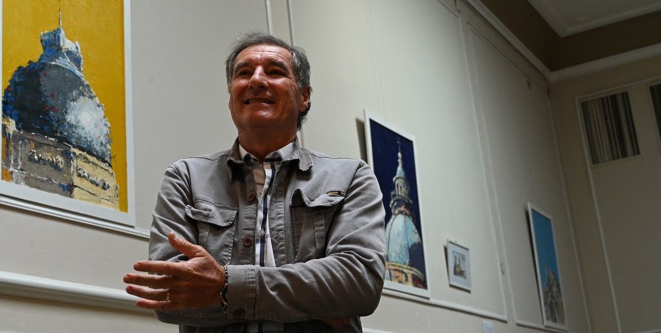 Los centenarios muros de la sala de reuniones de la Bolsa de Comercio de Santa Fe (San Martín 2231) lucen por estos días ataviados por acrílicos y acuarelas. Es que allí se despliegan las obras que componen "De cúpulas y colores de Santa Fe", la muestra del artista plástico Gustavo Pueyo.