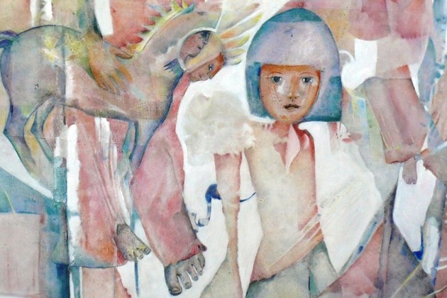 Tres artistas completaron la selección con trabajos centrados en el dibujo. Graciela González Mir, con una composición en lápices de colores que trabajaba figuras de modo sugerente.