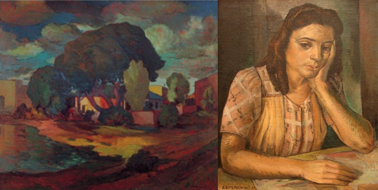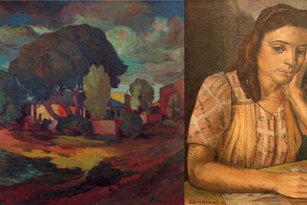 Primera etapa: “Suburbio”, uno de sus característicos paisajes, y “Pensativa”, uno de los retratos realizados en la línea de Lino Enea Spilimbergo. Fotos: Gentileza Facultad de Ciencias Jurídicas / Museo Provincial de Bellas Artes “Rosa Galisteo de Rodríguez”.