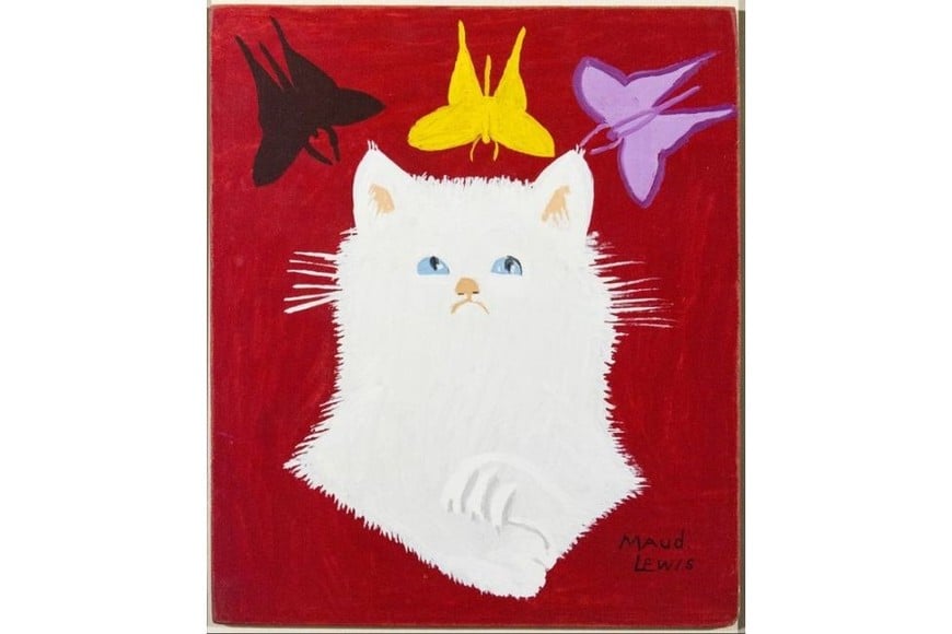 Las pinturas de Maud Lewis son, en general, escenas campestres con bueyes, casas de techos coloridos, gatos de ojos grandes y paisajes inspirados en su entorno.