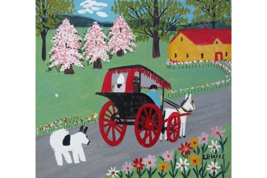 Sin acceso a materiales tradicionales, Lewis pintaba sobre madera, cartón y hasta en las paredes de su casita, que se parecía un “museo vivo” construido en base a su simple visión del mundo.