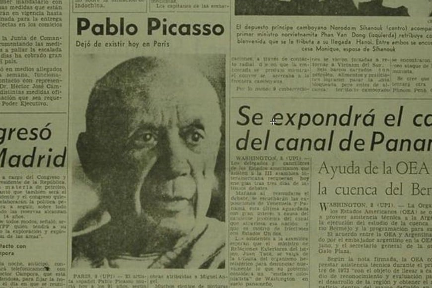 Picasso falleció en Francia, debido a un edema pulmonar. Era el 8 de abril de 1973. Los medios del mundo entero se hicieron eco de la noticia, entre ellos El Litoral, que le dedicó una amplia porción de su tapa, en la edición vespertina de ese mismo día.