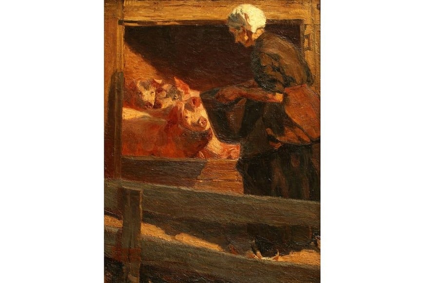 El siglo XX abre nuevas posibilidades, y "La comida de los cerdos", de Fernando Fader, da prueba de ello. La escena campesina es un estudio de luz, materia y composición.