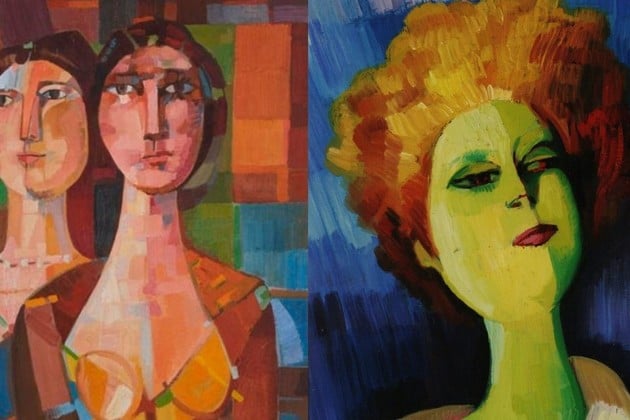 Dos obras de Sobisch que dan cuenta de su estilo: “Damas” y “Homenaje a Chagall”. Foto: Colección particular / Arte de la Argentina