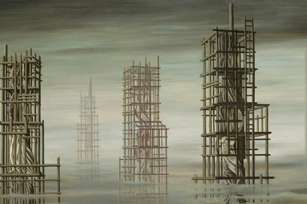Gelly Gryntaki profundiza esa lectura al describir sus cuadros como "escenarios de obras de Samuel Beckett o de ciencia ficción distópica: tristes cartografías de un mundo extraño".