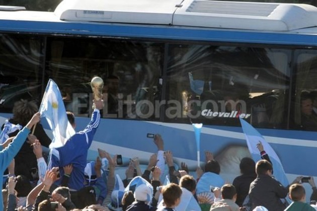 Una vez aterrizado el avión de Aerolíneas Argentinas, la delegación fue introducida en un micro oficial, salió del Aeropuerto Internacional "Trancredo Neves" por pista y se internó en la concentración de la localidad de Vespasiano, donde hoy realizará su primer entrenamiento cerrado.