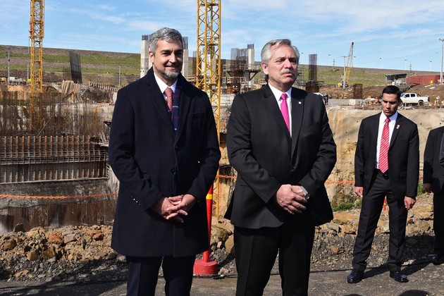 El presidente argentino visitó el país vecino para la supervisión de los avances del proyecto de maquinización del brazo Aña Cuá.