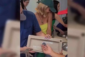 Fue allí cuando personal de mantenimiento del lugar debió intervenir para solucionar la desesperante situación. Retiraron la tapa de la mochila de descarga para trabajar con mas facilidad y, claro esta, para que la “atrapada” pueda salir del cubículo. “Te vamos a tener que cortar el dedo”, le decían en broma mientras la chica se reía de lo que estaba pasando.