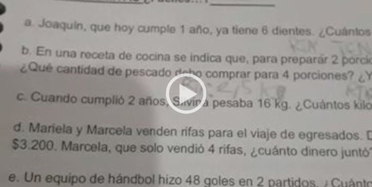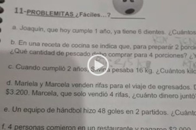 A través de un video donde muestra algunos problemas matemáticos en un cuadernillo fotocopiado y con el logo de Educación de Córdoba, un papá consultó a sus allegados si él estaba interpretando mal o había verdaderos errores en el planteo de los ejercicios.