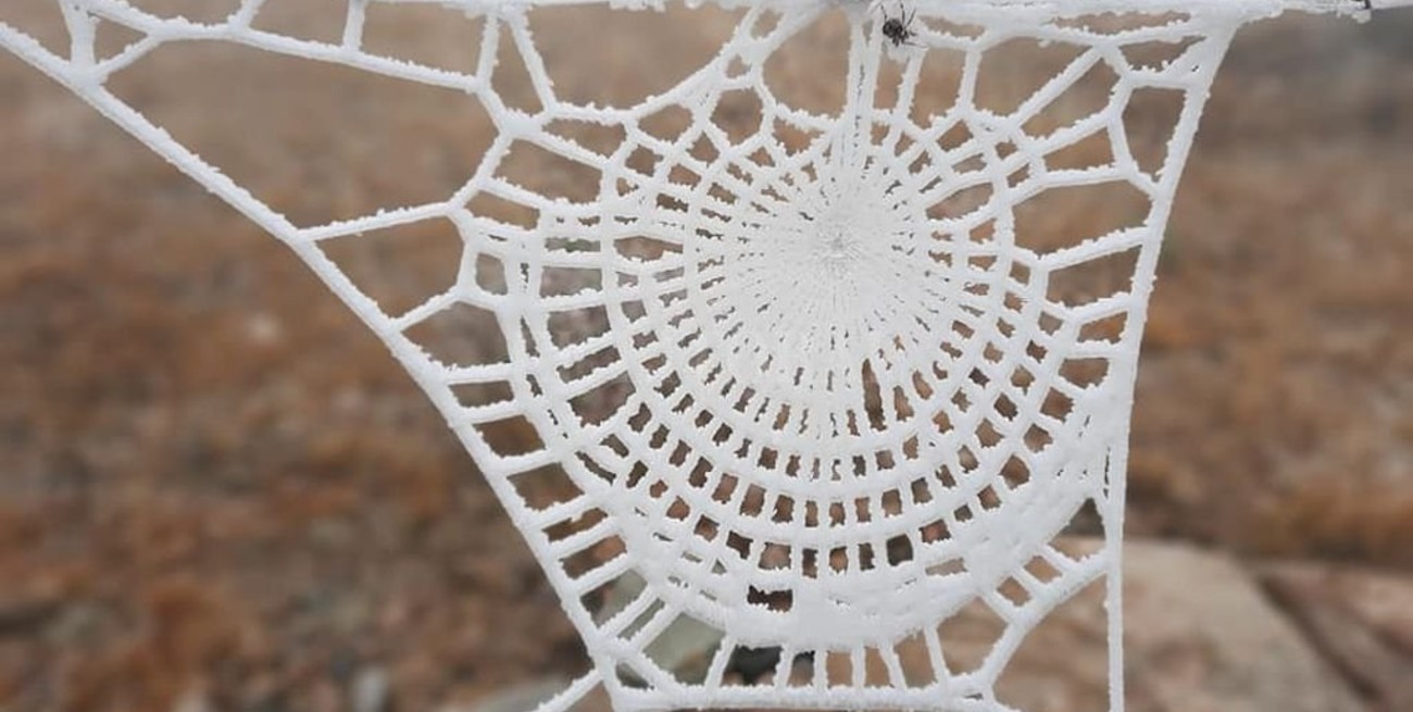 Circula en redes sociales una maravillosa secuencia de imágenes de una telaraña congelada que parece tejida por manos humanas.