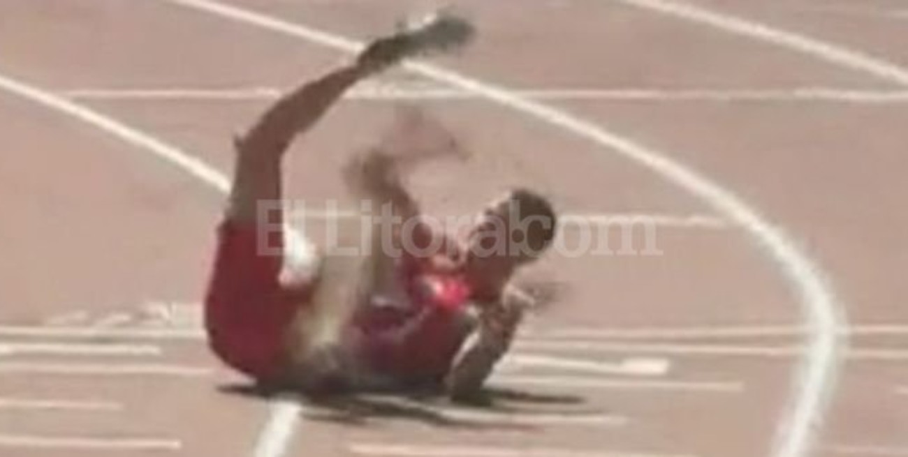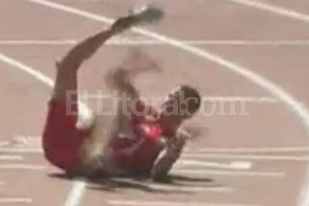 Cuando le faltaba muy poco para llegar a la meta, se cayó , justo cuando estaba arribando a la meta. La caída fue realmente fuerte, tal como lo demustran las imágenes. Afortunadamente, fue rápidamente atendido por los médicos.