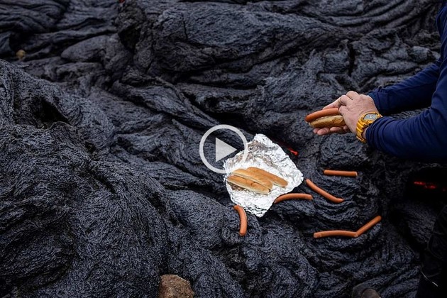 Miles de curiosos se reúnen en las inmediaciones del volcán que entró en erupción en Islandia, y los más atrevidos aprovechan la temperatura para cocinarse unos panchos.