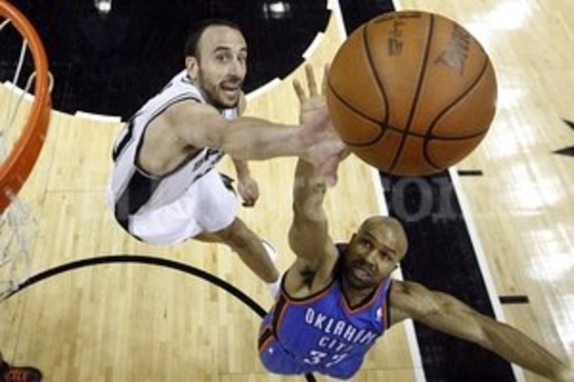 El escolta bahiense Emanuel Ginóbili tuvo un muy buen desempeño en el triunfo de San Antonio Spurs frente a Oklahoma City Thunder por 120-111, que le permitió al equipo texano sacar ventaja de 2-0 en la serie final de la conferencia oeste de la NBA.