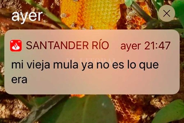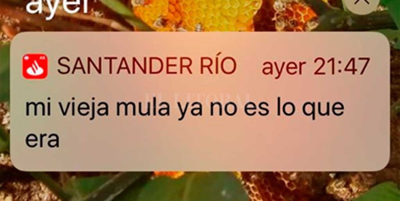 Este jueves por la noche, alrededor de las 22, muchos usuarios de celulares que tenían instalada la aplicación del banco Santander Río recibieron una extraña y a la vez graciosa notificación de la compañía.