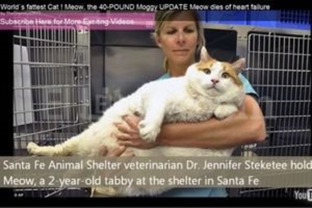 Meow, el gato estadounidense considerado el más grande del mundo, y que llegó a pesar 18 kilos, murió ayer, en un refugio en Santa Fe, Nuevo México, por problemas respiratorios a causa de la obesidad mórbida que padecía.