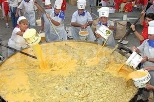 Para esta nueva edición se utilizarán 15.000 huevos, 100 kilogramos de jamón y varios kilos de condimentos que serán colocados en una gigantesca sartén de 4,20 metros y que se ubicará en un carro sobre rieles para su transporte.