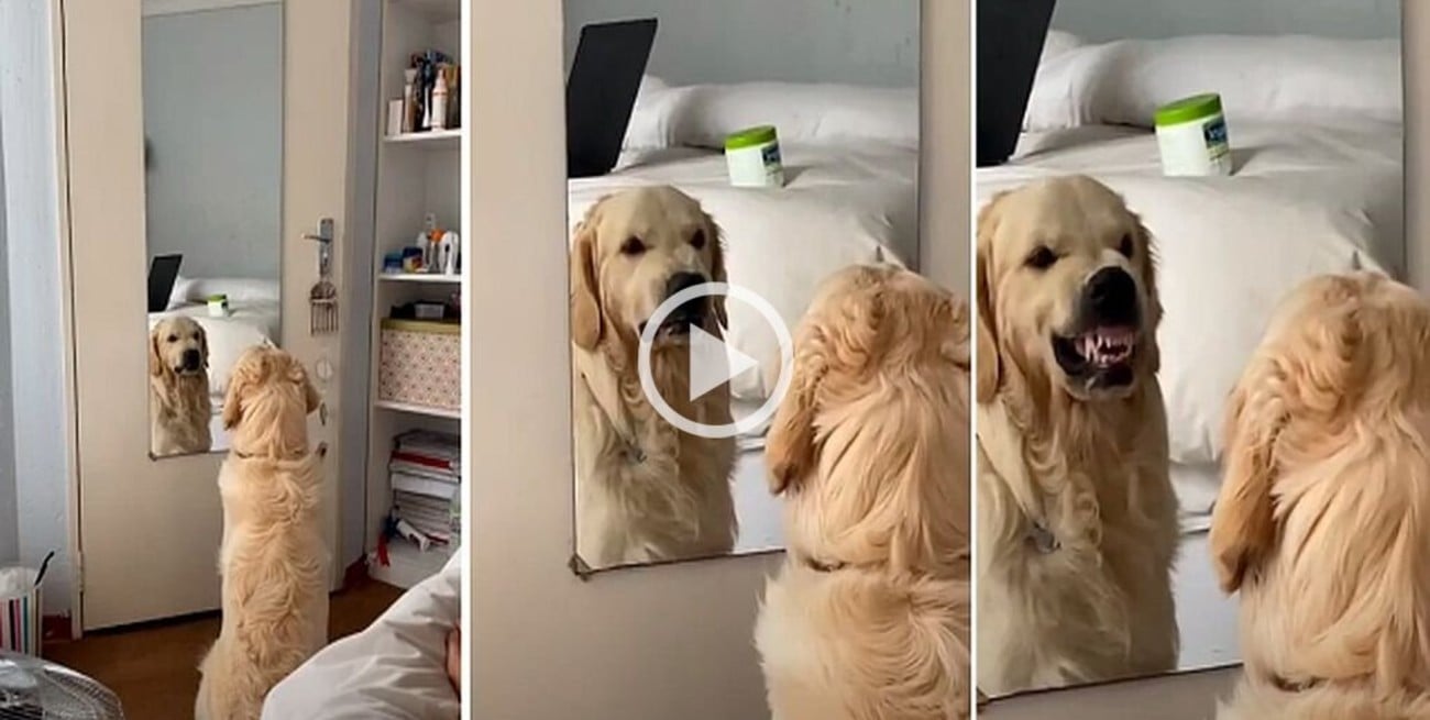 Se trata de un tierno golden retriever que deja de ser tan tierno cuando le gruñe a su propia imagen. Su dueña compartió el video.