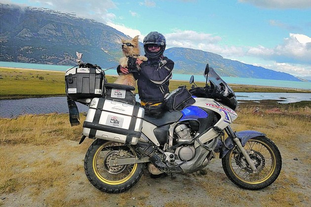 Con su dueño, el entrerriano Dardo Campostrini, hacen miles de kilómetros viajando en moto. La gente les ofrece alojamiento y comida y les ayudan a continuar el viaje