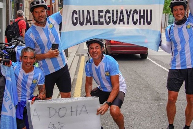 Miguel Silio (52), Yamandú Martínez (45), Luis Ledri (59) y Franco Baggio (29) son cuatro amigos de Gualeguaychú que irán en bicicleta hasta Qatar para alentar a la Selección Argentina en el Mundial 2022.