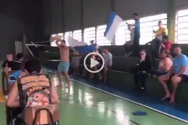 Mientras se desarrollaba un torneo de ajedrez en un estadio cubierto de básquet, un grupo de chicos se acercó a las instalaciones y comenzó a alentar a uno de sus amigos mientras jugaba una partida.