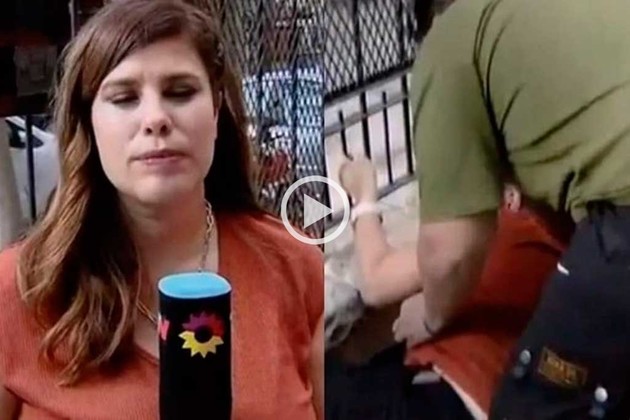 Mientras se desarrollaba el noticiero del mediodía en El Trece, una movilera sufrió una caída mientras salía en vivo en plena nota.
