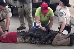 Pronto, el cazador de caimanes que la familia había llamado se dirigió a la casa y finalmente el animal fue capturado con la ayuda de varias personas. Cinco horas después de que Grande vio por primera vez al caimán, lo llevaron vivo y lo trasladaron a Gator Country, donde le dijeron al valiente padre que estaban emocionados de recibir al animal porque habían perdido a la mayoría de sus caimanes cuando golpeó el huracán Harvey.